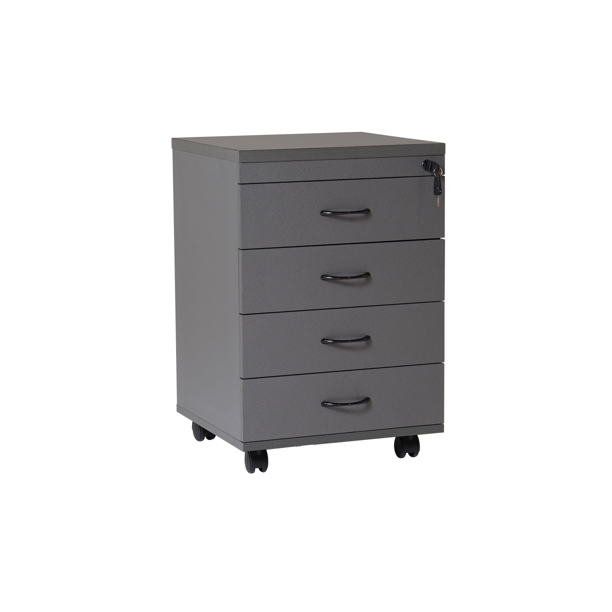 Mobile Pedestal - 4 Personal Drawers 465mm W x 447mm D x 690mm H, Lockable With Metal Runners E0 Rated Melamine Board - Black P/C Bow Handles